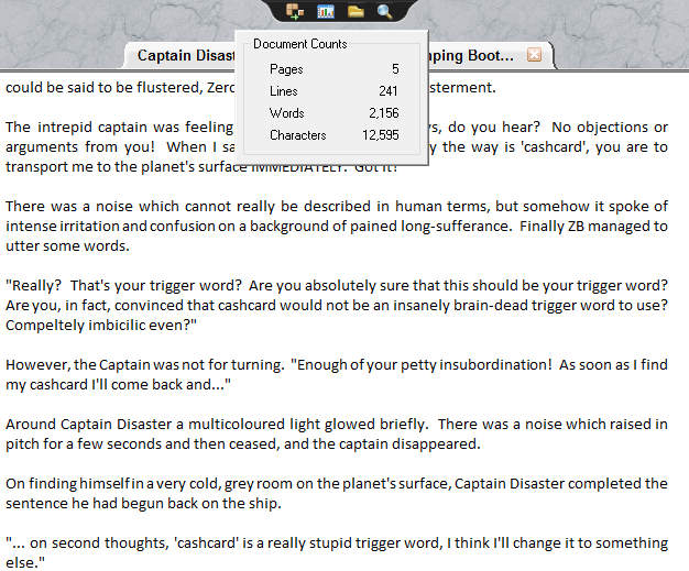 Also I have started working on the novelisation of Captain Disaster: Death Has A Million Stomping Boots. I have some screenshots to prove it (though it must be noted that it is very early days with this project...):